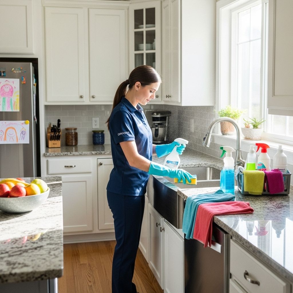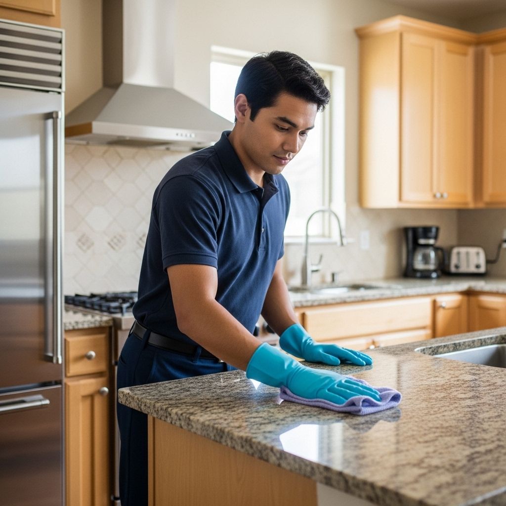 Countertops and Cabinets: Clear countertops and wipe them down. Clean cabinet doors and hardware, removing any grease or grime. Consider using our deep cleaning services for a truly thorough clean.